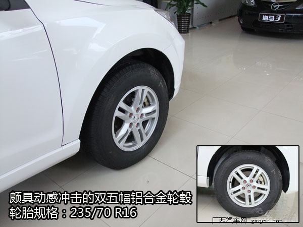騎士的輪轂設(shè)計(jì)業(yè)相當(dāng)有個(gè)性的,頗具動(dòng)感沖擊的雙五幅鋁合金輪轂,輪胎規(guī)格為:235/70 R16。