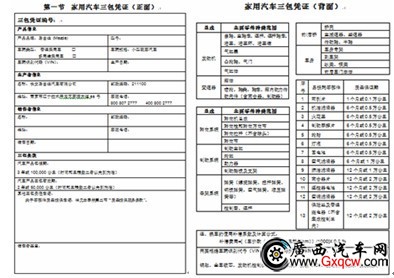 圖:長(zhǎng)安馬自達(dá)“三包手冊(cè)”中的三包憑證