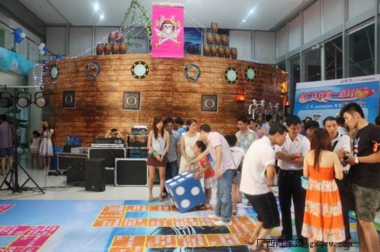 車友們參加了為車友們量身定做實體版HONDA“大富翁”游戲的,展現(xiàn)精彩紛呈的有車生活!昂1I船尋寶”賦予了強烈的神秘感,大型海盜船裝飾和主持人服飾的完美結合,讓人沉浸在美麗的加勒比。通過游戲,車主積累了財富經(jīng)驗,換取禮品,還結識了新朋友。車主**時刻評選,最浪漫的車主、最天涯海角的車主,最幸運的車主,。。。。每一位都璀璨耀眼,一出來就能贏得大家的喜歡,更有鑫廣達店精心準備的禮品,這夜,200多位車友嘉賓在笑聲、鼓聲中共同度過這個歡樂的海濱世界之旅。