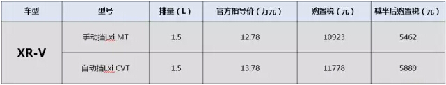如果說省油是一筆長久的實惠,感覺不那么明顯,那么接下來這個可是大紅包一次性給足驚喜。根據(jù)國務院常務會議出臺1.6升及以下排量乘用車車輛購置稅減半的政策,購買XR-V還能一次性省掉一大筆。按照這個標準,XR-V可省下近6000元的購置稅!
