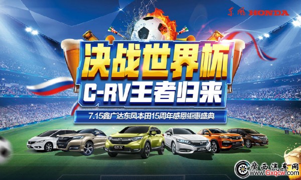 決戰(zhàn)世界杯,7.15鑫廣達東風本田15周年感恩鉅惠盛典即將到來。