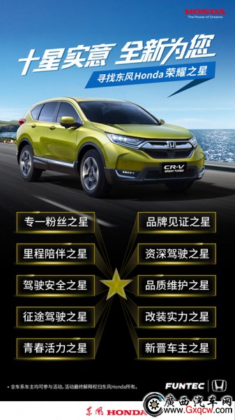 十星實意,全新為您 東風Honda榮耀之星盛情招募中