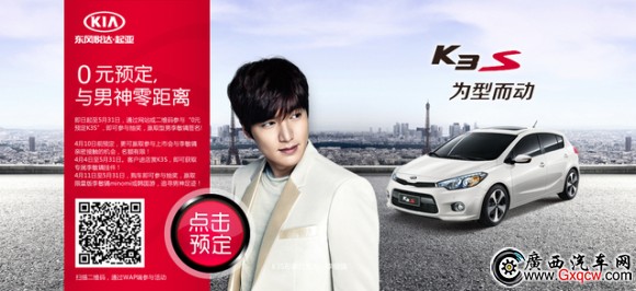 關(guān)注東風(fēng)悅達(dá)起亞K3S,李敏鎬親筆簽名、K3S專屬李敏鎬精美掛飾、限量版玩偶、韓國(guó)型動(dòng)之旅等獎(jiǎng)項(xiàng)等您來(lái)贏取。
