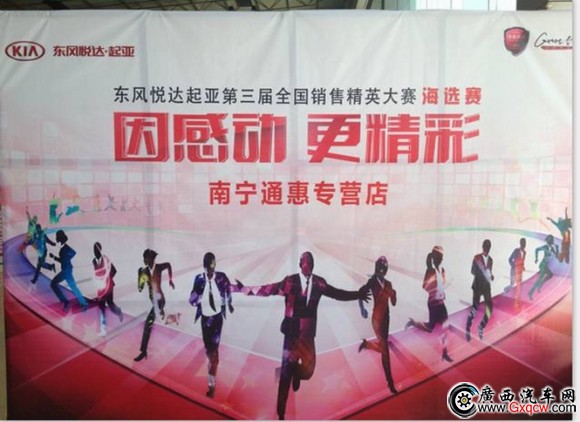 2014年,在新形勢下,為帶動銷售團隊提升服務技能,在同質(zhì)化銷售競爭逆境中脫穎而出,并為銷售精英提供一個全面展現(xiàn)自己、超越自己、創(chuàng)造精彩、分享精彩的舞臺,東風悅達起亞決定開展“因感動,更精彩”第三屆全國銷售精英大賽。東風悅達起亞南寧通惠4S店于5月23日在南寧通惠展廳舉行海選賽。