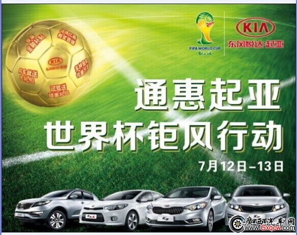 世界杯比賽如火如荼的進(jìn)行著,為迎接世界杯決賽的到來,東風(fēng)悅達(dá)起亞南寧通惠金牌4S店將在7月12日-13日開展世界杯鉅風(fēng)行動(dòng),全系裸車鉅惠,并有世界杯專享大禮包贈(zèng)送!詳詢東風(fēng)悅達(dá)起亞南寧通惠4S店:0771-2244666,地址:南寧市白沙大道69號(hào)(白沙友誼立交旁)。