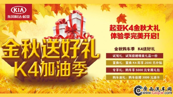 四重好禮讓您十一出行無“油”慮,安心享受K4帶來的“金秋加油季”。