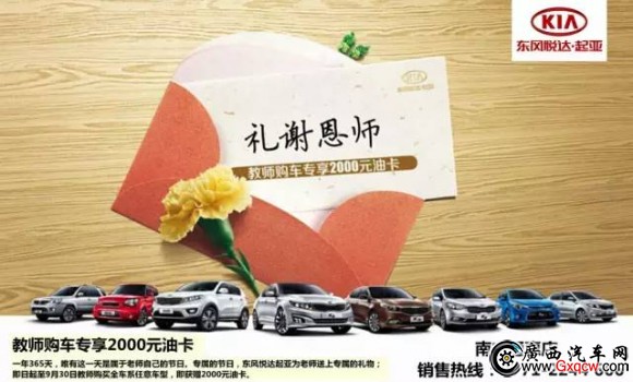 老師作為人類靈魂的工程師,他們用青春和汗水,播種未來希望。一年365天,唯有這一天是屬于老師自己的節(jié)日,專屬的節(jié)日。一年在金秋九月收獲季,讓我們一起感恩播種者。隨著教師節(jié)來臨,東風(fēng)悅達(dá)起亞南寧通惠4S店將開啟感恩回饋,對全國教育工作者致以崇高敬意。東風(fēng)悅達(dá)起亞南寧通惠4S店為老師送上專屬的禮物。即日起至9月30日教師購買全車系任意車型,即獲贈2000元油卡。