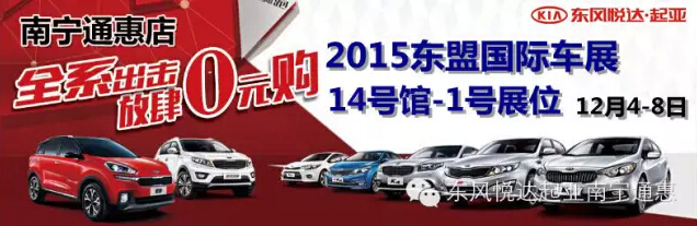 12月4-8日,2015年*后一個大型車展!第八屆東盟車展在南寧國際會展中心隆重舉行!玉柴•通惠起亞旗艦店將攜旗下全系車型強勢進駐2樓14號館!以既有實力又有顏值的全系K5帶領的起亞全車系,將給您帶來全新的購車優(yōu)惠!