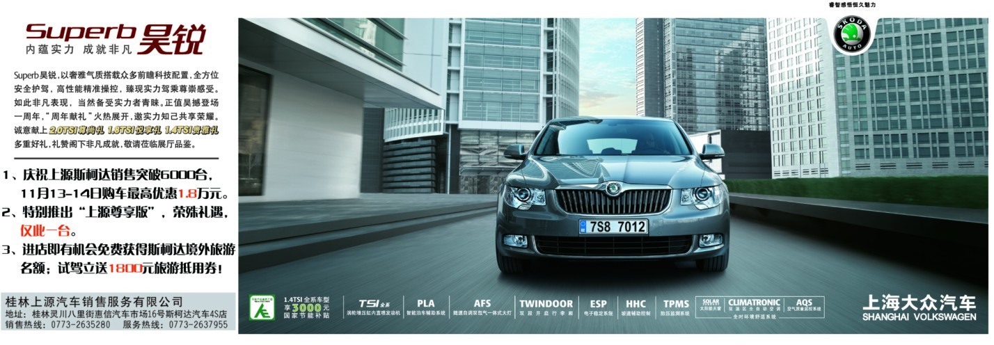 (上海大眾斯柯達桂林4S店)上海大眾斯柯達品牌汽車、汽車零配件、汽車用品的銷售及售后服務(wù),二手車交易等。
