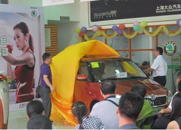 (桂林上源銷售經(jīng)理韋劍彬與斯柯達(dá)老車主代表唐建林共同揭開新晶銳神秘面紗)