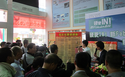 (銷售顧問向車友朋友們介紹新晶銳配置上的改變以及活動(dòng)當(dāng)天讓利)