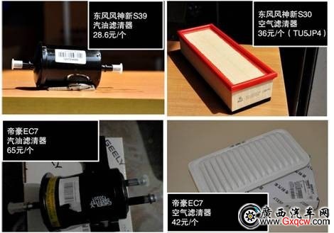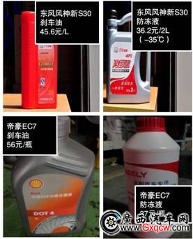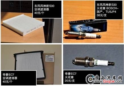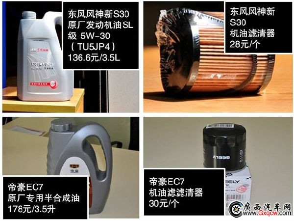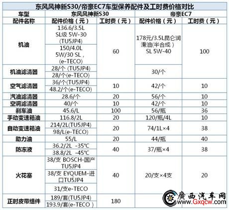 東風(fēng)風(fēng)神新S30/帝豪EC7車型保養(yǎng)配件及工時費(fèi)價格對比