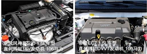 兩車同屬緊湊車型行列,所以發(fā)動機(jī)排量都不高,新S30搭載的1.6L發(fā)動機(jī)曾經(jīng)出現(xiàn)在PSA集團(tuán)旗下的許多車型當(dāng)中,*大功率78kW,*大扭矩142N?m,在成熟性方面有著無可比擬的優(yōu)勢。而全新搭載的自主研發(fā)1.5L發(fā)動機(jī)加入了VVT可變氣門正時系統(tǒng),*大功率85kW,*大扭矩145N?m,數(shù)據(jù)表現(xiàn)更加搶眼。而2013款帝豪EC7在動力方面依然沿用12款的動力系統(tǒng),有 1.5L和1.8L兩種排量可選,*大功率分別為80kW、102kW,*大扭矩分別為135N?m、172N?m。