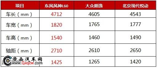 從上表可以看出,在車身尺寸方面,相較大眾朗逸、北京現(xiàn)代悅動兩款熱銷合資車型,東風(fēng)風(fēng)神L60可以說是全面**,4712/1820/1540mm的車身尺寸,以及2710mm的軸距,堪比C級車,不僅看起來更加大氣時尚,而且成就了其超越同級車的乘坐舒適性1425mm的座椅寬度,超越朗逸與悅動,保障每一位家庭乘員的乘坐舒適性。