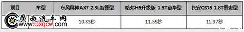 東風(fēng)風(fēng)神AX7發(fā)動機(jī)允許車輛在2500rpm起步,百公里加速成績?yōu)?0.83秒,在裝備自然吸氣發(fā)動機(jī)的自主品牌SUV中穩(wěn)坐**的位置。高轉(zhuǎn)強(qiáng)勁的發(fā)動機(jī)和成熟的變速箱匹配是取得這一優(yōu)秀成績的關(guān)鍵所在。而哈弗H6和長安CS75在加速方面的表現(xiàn)相當(dāng),都處于正常水平。哈弗H6的發(fā)動機(jī)起步在3000rpm,過高或者過低都會影響發(fā)揮,其百公里加速成績則為11.59秒。而長安CS75的整個加速過程比較穩(wěn)健,但加速時間需要更久一點(diǎn),為11.97秒。