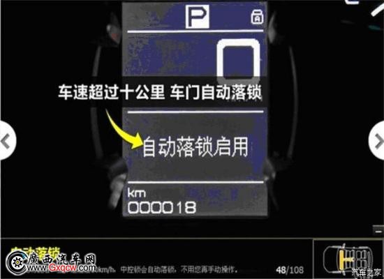6)車速超過(guò)十公里 車門自動(dòng)鎖上(儀表會(huì)有信息顯示)