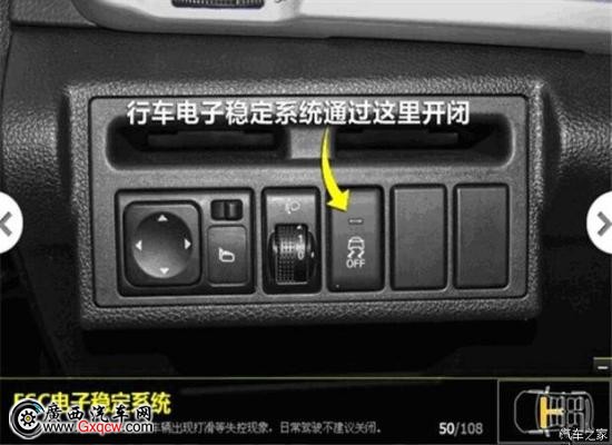 8)車身穩(wěn)定系統(tǒng)(ESC)是通過(guò)下圖按鈕開(kāi)啟與閉合