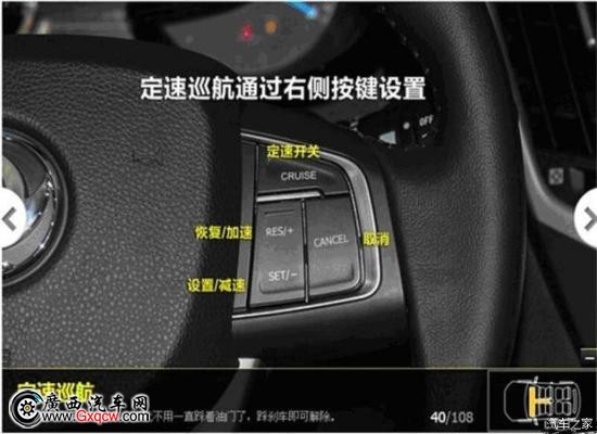 2)方向盤上右側(cè)區(qū)域:為定速巡航控制按鈕區(qū)