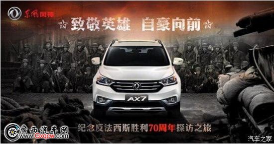 同時,站在抗戰(zhàn)勝利70周年的時點(diǎn),東風(fēng)風(fēng)神將同步開啟品質(zhì)礪劍第二季——“致敬英雄 自豪向前”紀(jì)念抗戰(zhàn)勝利70周年探訪之旅活動。以央企國家隊(duì)身份發(fā)起,以軍工品質(zhì)為依托,東風(fēng)風(fēng)神吹響 “向英雄致敬”的集結(jié)號,帶領(lǐng)由AX7閱兵版車隊(duì)組成的鋼鐵紅流重走抗戰(zhàn)路:AX7巡游車隊(duì)將沿多條紅色路線,全程穿越全國15個省2個直轄市,歷時5個月,橫跨萬里,穿越70年的歷史時空,去溯尋一脈英雄豪情,展現(xiàn)中國汽車品牌的自信自強(qiáng)。