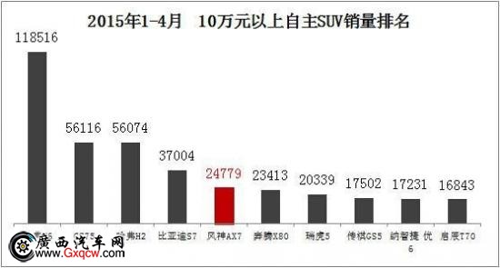 早在今年年初,東風(fēng)風(fēng)神AX7就已熱銷北京、上海、廣州等國內(nèi)一線城市。今年1月份,AX7銷量突破8000臺,是緊湊型SUV區(qū)隔中最快(僅用3個月時間)月銷破八千的車型。隨著產(chǎn)品優(yōu)勢和用戶口碑的持續(xù)升級,AX7的魅力已經(jīng)越來越多地輻射到全國各地。AX7在北京、上海、江蘇等經(jīng)濟(jì)發(fā)達(dá)地區(qū)持續(xù)保持熱銷態(tài)勢,在浙江、青海、新疆、武漢等省市甚至出現(xiàn)一車難求的局面,部分地區(qū)銷量超過了哈 弗H6、長 安CS75等眾多熱銷車型。據(jù)悉,1-4月,AX7累計(jì)銷量達(dá)到24779輛,在10萬元以上的自主SUV車型中,位列第5名,超過了別克昂 科拉、標(biāo) 致3008、逍 客等主流合資SUV車型和奔 騰X80、傳 祺GS5等熱銷自主SUV車型。