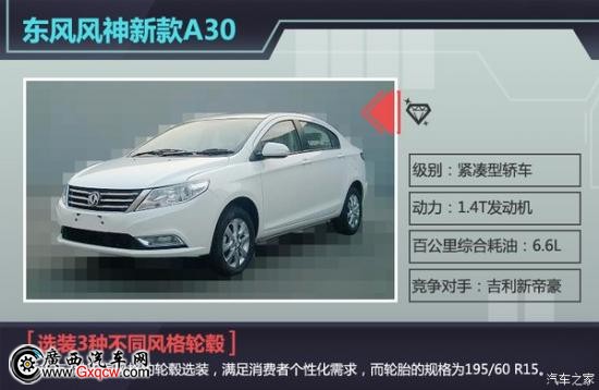 東風(fēng)風(fēng)神新款A(yù)30定位為緊湊型轎車,車身架構(gòu)采用承載式車身,尺寸并沒有變化,車身長寬高依舊為4530/1730/1490mm,軸距為2620mm。據(jù)了解,新車有3種不同風(fēng)格的輪轂選裝,滿足消費(fèi)者個(gè)性化需求,而輪胎的規(guī)格為195/60 R15。