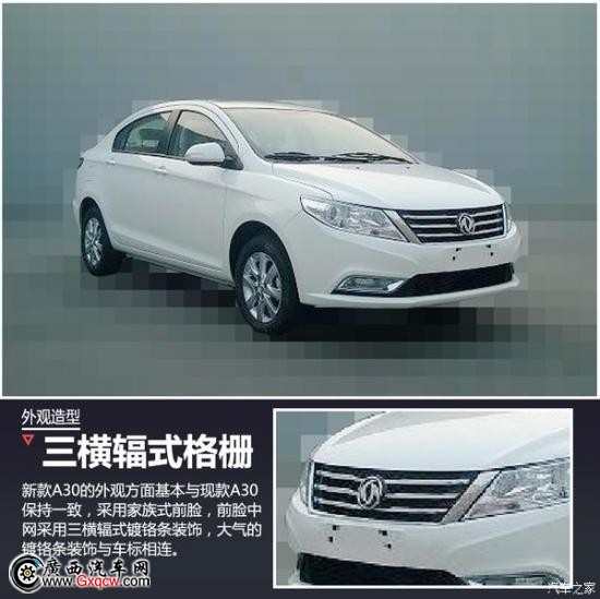 從照片中看,新款A(yù)30的外觀方面基本與現(xiàn)款A(yù)30保持一致,采用家族式前臉,前臉中網(wǎng)采用三橫輻式鍍鉻條裝飾,大氣的鍍鉻條裝飾與車標(biāo)相連,兩側(cè)較大尺寸的頭燈與中網(wǎng)融為一體,新車整體風(fēng)格時(shí)尚、精致。