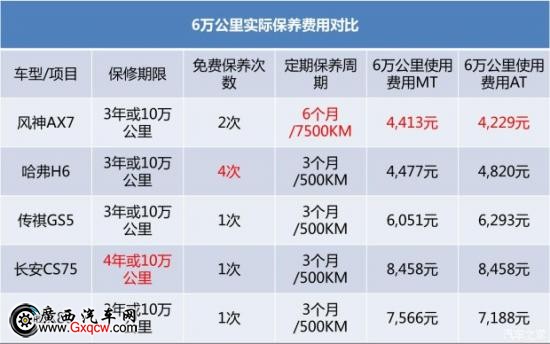 6萬公里實際保養(yǎng)總費(fèi)用:AX7平均費(fèi)用節(jié)省超50%