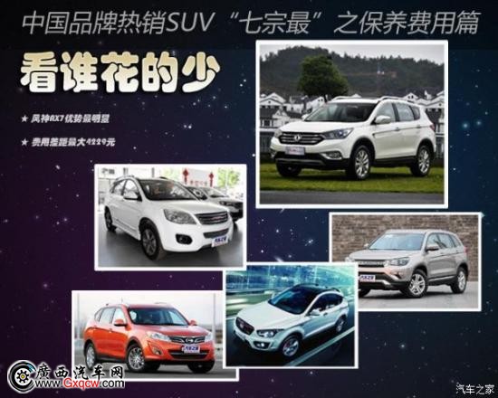 買得放心,用得省心”算是所有汽車用戶的心聲,而用得省心與否直接取決于車型的保養(yǎng)成本,絕對算是所有用戶都關(guān)心的重點(diǎn)話題。作為中國汽車市場中增長最為迅速的SUV市場,東風(fēng)風(fēng)神AX7、哈 弗H 6、傳 祺G S5、長 安CS 75、奔 騰X 80五款車型都可以稱之為中國SUV的佼佼者,而這五款車型的保養(yǎng)費(fèi)用誰最低 ?下面我們就通過保養(yǎng)周期、配件價格、工時費(fèi)、3年6萬公里總花費(fèi)幾方面做個一一對比。