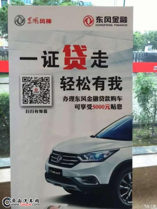 18-19日華南城車展,按揭購(gòu)買東風(fēng)風(fēng)神AX7車型,統(tǒng)一補(bǔ)貼5000元,按揭材料只需個(gè)人身份證一張。4小時(shí)就可審批,3天就可以提車,開一個(gè)星期磨合新車,國(guó)慶期間一家人就可以長(zhǎng)途出游了。