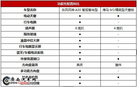 安全:超越同級 A30安全關(guān)懷無微不至 海馬M3在常用的基礎配置上也基本配備,但總體對比來看,還是A30更為實在和豐富。不過這兩款車雖然是家用級別車型,但是絕對可以與更高一級別的合資車抗衡了。