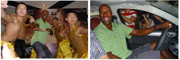 (布魯斯-鮑文在鄭州試乘華系車風(fēng)神,領(lǐng)略中國少林功夫)