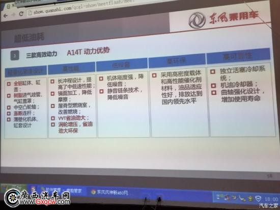 DFMA14T為東風(fēng)A系列自主研發(fā)發(fā)動機(jī),承繼A系列發(fā)動機(jī)的結(jié)構(gòu)特點和技術(shù)優(yōu)勢,采用VVT·渦輪增壓等技術(shù),具有動力強(qiáng)勁·油耗低·噪音低·振動小等優(yōu)點。