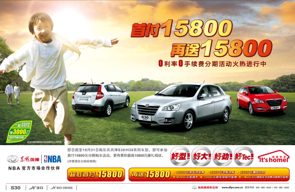 配合搶跑"金九"的行動,各車企也順勢推出系列的購車金融優(yōu)惠解決方案,從價格、貸款條件等全面降低消費者的購車門檻。上海大眾等品牌推出了零利率超低首付車貸方案,選擇車貸的客戶還能額外享受大禮包。東風(fēng)風(fēng)神則針對S30和H30車型推出了"你買車我買單 風(fēng)神首付15800再送15800"活動。