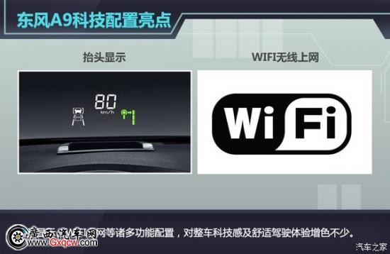 科技配置是新車的一大亮點,據(jù)悉,新車將配備自動大燈點亮、自動空調、抬頭顯示、集成式GPS天線(兼容北斗系統(tǒng))等諸多功能配置,對整車科技感及舒適駕駛體驗增色不少,其中抬頭顯示功能常見于在該級別及更高級別的合資車型中,有助于進一步提升行車安全性。此外,東風A9還將配備WIFI無線上網(wǎng)支持,滿足用戶日趨增長的車內上網(wǎng)需求。