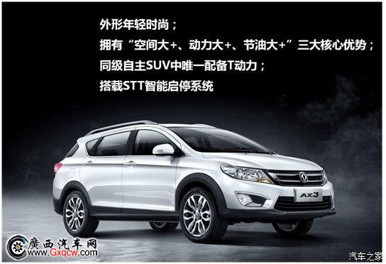 “大 SUV”AX3上市,售價(jià)6.97-8.77萬元。上市之后,東風(fēng)風(fēng)神AX3將與“同門學(xué)長”AX7并肩攜手出擊火爆的SUV市場。俗話說得好,“打虎親兄弟,上陣父子兵”,AX3與AX7的組合,必將為東風(fēng)風(fēng)神2016年的銷量打開新局面。
