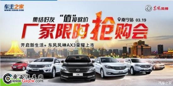 新春三月,東風(fēng)風(fēng)神廠家鉅惠,趁現(xiàn)在,一切都正好,買(mǎi)輛車(chē),開(kāi)車(chē)去春游吧!3月19日,車(chē)主 之家聯(lián)合南寧和順東風(fēng)風(fēng)神廠家超級(jí)特賣(mài)會(huì),春季特別優(yōu)惠,開(kāi)春限時(shí)開(kāi)賣(mài)。