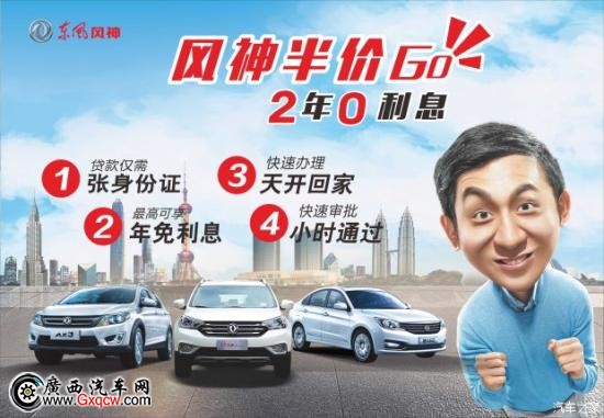 2016年7月11日至7月17日,就在南寧和順專營店,舉辦《東風(fēng)風(fēng)神半價GO專場》 ,炎炎夏日,鉅惠來襲,東風(fēng)風(fēng)神熱銷車型半價GO,樂享2年0利息,讓您輕松就能把愛車“貸”回家,購車0麻煩,置換、加裝、分期、上牌、保險、購置稅,輕松一站搞定!前所未有的矩惠限時搶購中!機不可失,失不再來!快來搶購吧!網(wǎng)上預(yù)約報名購車均可贈送千元大禮包!